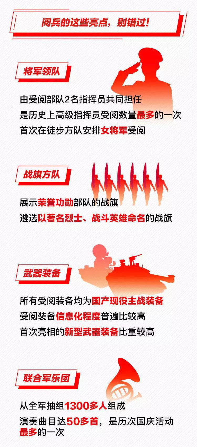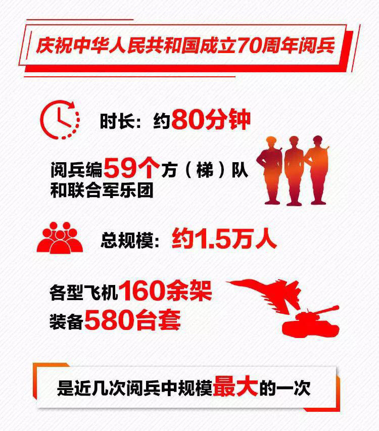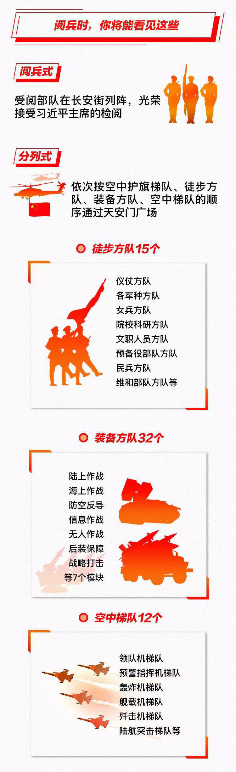 為慶祝新中國成立70周年,10月1日北京天安門廣場將舉行盛大閱兵式。屆時,32個裝備方隊、12個空中梯隊將通過天安門廣場,接受檢閱。此次閱兵,所有受閱裝備均為國產(chǎn)現(xiàn)役主戰(zhàn)裝備,其中包括我軍部分新型裝備,是近幾次閱兵中規(guī)模最大的一次。