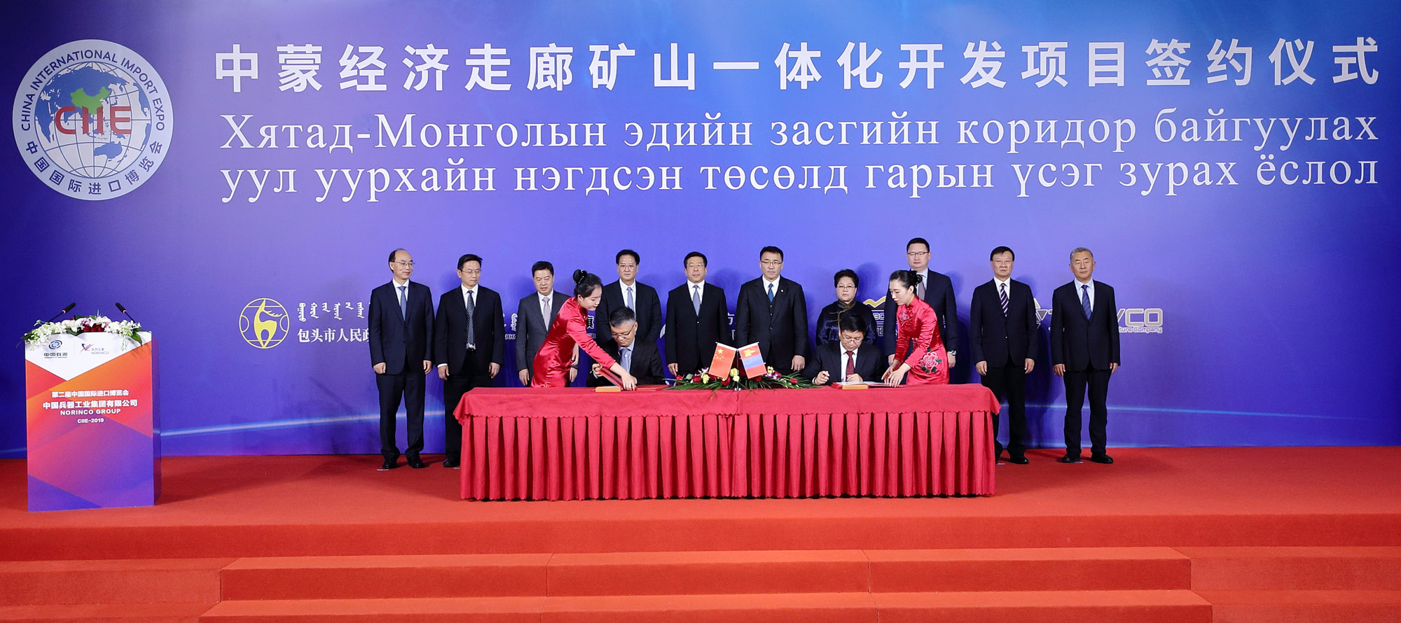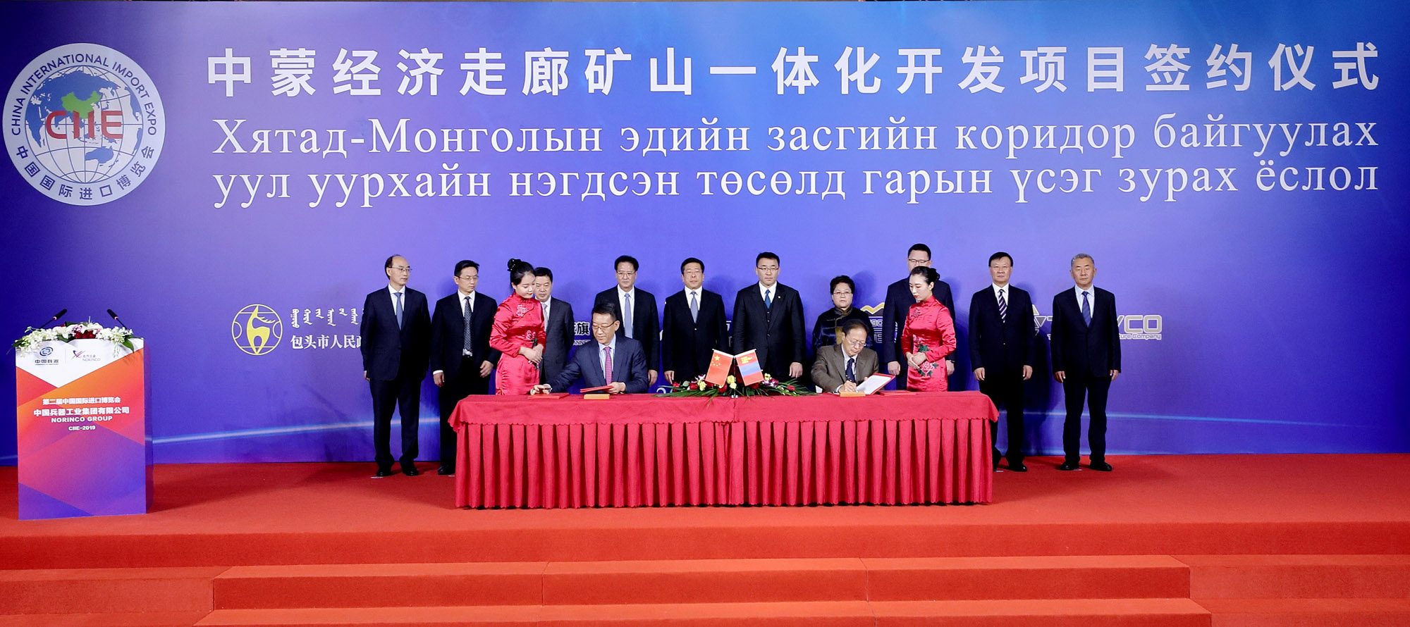 11月4日,第二屆中國國際進(jìn)口博覽會開幕前,在中國兵器工業(yè)集團(tuán)有限公司董事長焦開河和蒙古礦業(yè)與重工業(yè)部部長蘇米亞巴扎爾·道古蘇仁、國務(wù)院國資委副主任任洪斌、內(nèi)蒙古自治區(qū)副主席艾麗華的共同見證下,中蒙經(jīng)濟(jì)走廊礦山一體化項(xiàng)目在上海簽約。簽約前,各相關(guān)方進(jìn)行了友好會談。
