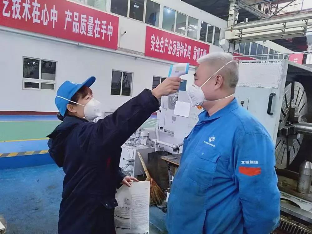 北重集團(tuán)為在崗工作人員準(zhǔn)備了洗手液、口罩、噴壺等消毒防護(hù)器材,對進(jìn)入廠房人員嚴(yán)格登記和測量體溫,對工作人員一日四次檢測體溫并進(jìn)行記錄,在做好疫情防控的同時(shí)保證生產(chǎn)。