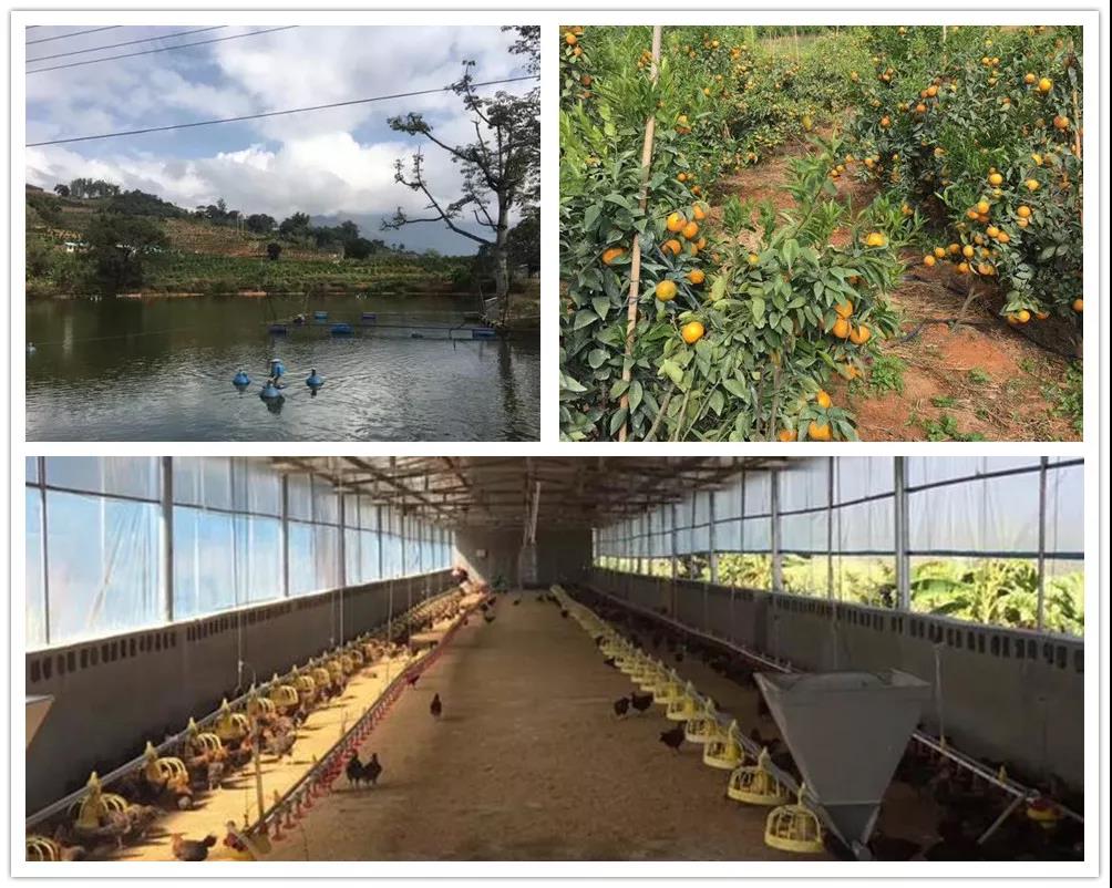 在紅河縣,當(dāng)?shù)匕傩者M(jìn)行柑橘種植及魚苗、雞養(yǎng)殖