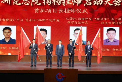 圖為中國(guó)海油所屬研究總院揭榜掛帥啟動(dòng)大會(huì)首批項(xiàng)目長(zhǎng)掛帥儀式。