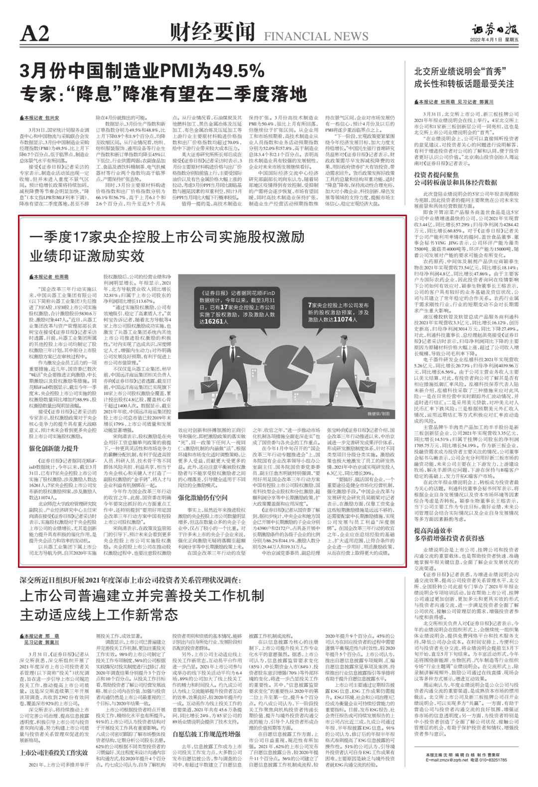 近日,中國兵器工業(yè)集團有限公司國企改革三年行動的經(jīng)驗做法和工作成效引發(fā)媒體廣泛關(guān)注。中國新聞社、中國網(wǎng)、工人日報客戶端、光明日報客戶端、新華財經(jīng)、國資報告、人民網(wǎng)、國資委網(wǎng)站、人民政協(xié)網(wǎng)、《證券日報》、學(xué)習(xí)強國平臺、央廣經(jīng)濟之聲、第一財經(jīng)客戶端、新華社、《經(jīng)濟參考報》、海外網(wǎng)、中工網(wǎng)、騰訊網(wǎng)、新浪網(wǎng)、搜狐網(wǎng)、網(wǎng)易網(wǎng)等中央主流媒體、國家部委網(wǎng)站及知名網(wǎng)絡(luò)媒體對集團公司國企改革三年行動情況進行了刊載報道。 中國新聞社:兵器工業(yè)集團:國企改革三年行動156項改革舉措2021年底已完成90%以上 中國網(wǎng):兵器工業(yè)集團“四個堅持”促改革 成效顯著 中國網(wǎng):兵器工業(yè)集團體系化推進民品發(fā)展戰(zhàn)略 布局17個重點產(chǎn)業(yè)領(lǐng)域 工人日報客戶端:兵器工業(yè)集團國企改革三年行動取得顯著成效 光明日報客戶端:兵器工業(yè)集團國企改革三年行動成效顯著 新華財經(jīng):兵器工業(yè)集團三年行動見實效 國資報告:聚焦高水平自立自強,兵器工業(yè)集團深化體制機制變革成效顯著 人民網(wǎng):“國企改革三年行動”系列報道——三項制度改革進一步走深走實 國有企業(yè)活力動力明顯增強 國資委網(wǎng)站:【對標(biāo)世界一流 央企加速奔跑】兵器工業(yè)集團國企改革三年行動成效顯著 人民政協(xié)網(wǎng):兵器工業(yè)集團改革舉措走深走實 創(chuàng)新激發(fā)企業(yè)活力 《證券日報》:一季度17家央企控股上市公司實施股權(quán)激勵 業(yè)績印證激勵實效 學(xué)習(xí)強國平臺:兵器工業(yè)集團國企改革三年行動成效顯著 第一財經(jīng)客戶端:國企改革三年行動攻堅沖刺,中長期激勵有望深層次突破 新華社、《經(jīng)濟參考報》:國企改革三年行動迎考 混改上市動作頻頻 中長期激勵擴圍升級 《證券日報》:年內(nèi)8家國有控股公司登陸A股 39家排隊中 《經(jīng)濟參考報》:兵器工業(yè)集團:用改革點燃創(chuàng)新引擎 |
